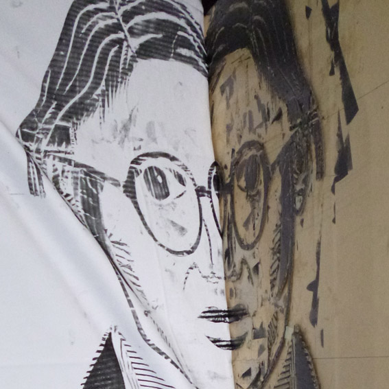 Art Heroes 2013, collagraphs printed on cotton fabric, 120 x 100 cm