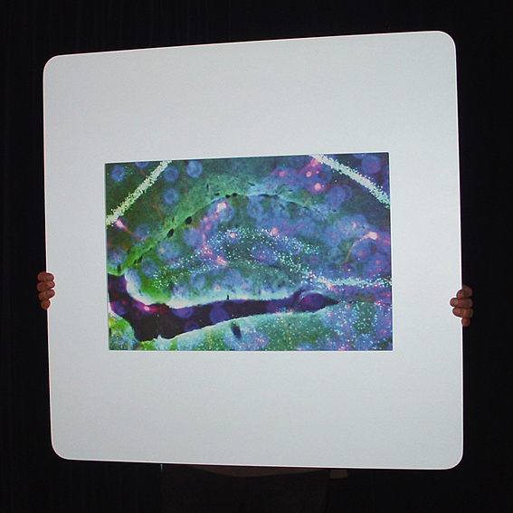 Lucia gave us the opportunity to photograph her laboratory slides through the microscope. These images relate to her research on the rescue of memory after brain injury. The encounter was both insightful and hopeful. This was a fascinating and surreal experience resulting in a printed series of manipulated images.