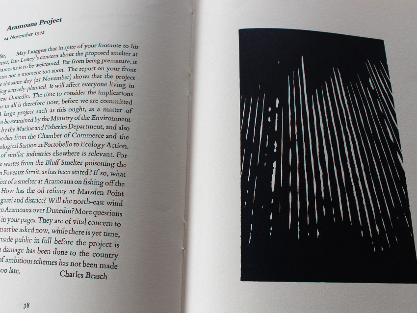 A letterpress publication produced on the occasion of the University of Otago’s 150th anniversary. Featuring solar plate relief printed illustrations as artist in residence.